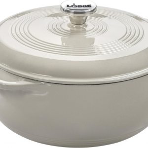 6 Quart Enameled Cast Iron Dutch Oven with Lid – Dual Handles – Oven Safe up to 500° F or on Stovetop – Use to Marinate, Cook, Bake, Refrigerate and Serve – Oyster White