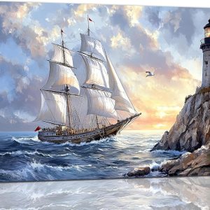 Sailboat Print Lighthouse Wall Decor Coastal Ocean Pictures