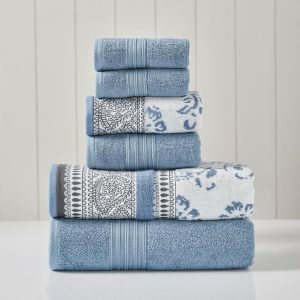 Modern Threads 6 Piece Set, 2 Bath Towels, 2 Hand Towels, 2 Washcloths Yarn Dyed Jacquard/Solid Towel Set Ophelia Blue