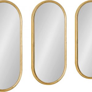 Caskill Glam Wall Mirror Set, Set of 3, 10 x 22, Gold, Decorative Modern Mirror Wall Decor Collection with Minimal Frame and Capsule OVA
