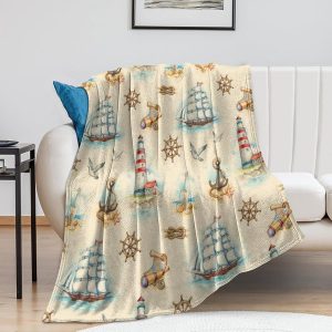 Sailboat Lighthouse Anchor Seamless Pattern Soft Warm Cozy Plush Flannel Covers
