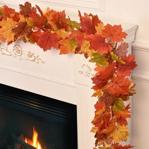 Fall Maple Leaves Garland for Mantel, 5.9 Ft Autumn Garland for Indoor Outdoor Porch Thanksgiving Decor