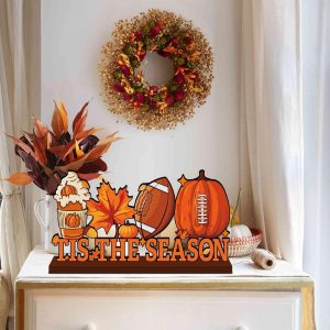 Fall Decorations, Fall Football Theme Wooden Table Centerpiece, Tis the Season Sign, Autumn Harvest Thanksgiving Wooden Sign (11.8×6 Inches)