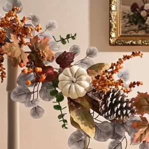 Fall Decor,Fall Garland for Mantel, 6 FT Fall Garland with Light, Lighted Autumn Garlands with Faux Lamb’s Ear & Pumpkins, Thanksgiving Table Centerpiece, Fall Decorations for Home Porch Fireplace