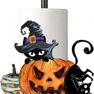 Bonsai Tree Halloween Kitchen Decor, Bathroom Decor, Halloween Decorations for Home & Indoor, Black Cat & Pumpkin Decorations Paper Towel Holder