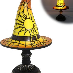 Witch Hat Lamps, Handcrafted Stained Glass Gothic Wizard Hat Lights, Small Wizard Hats Shape Spooky Fun Light for Indoor Party Haunted Wiccan Halloween Decor, Halloween Day Gifts (Orange)