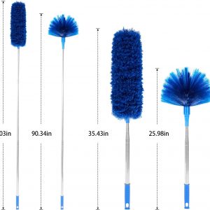 Ceiling Fan Brush, Cobweb Duster with Extension Pole, Washable Cleaning Duster Kit with 2 Duster Heads, Cobweb and Corner Duster,15-100 Inch Long Aluminum Telescoping Pole