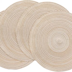 15 Inch Round Braided Placemats Set of 4, Washable Heat Resistant Cotton Polyester Circle Place Mats – Canvas Beige