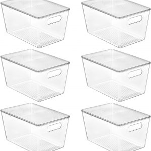 6 Pack Clear Stackable Storage Bins with Lids, Large Plastic Containers with Handle for Pantry Organizer and Storage,Perfect for Bathroom,Cabinet,Kitchen,Fridge,Closet Organization