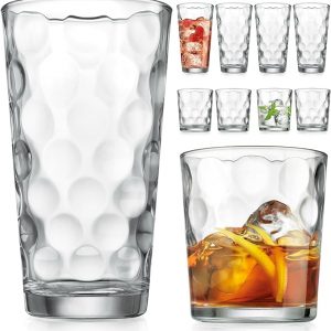 Home Essentials and; Beyond Glassware, Goblet and Drinking Glasses Set Of 8 4 Highball (17 oz.) Kitchen Glasses | 4 (13 oz.) Rocks Glass Cups for Water, Juice and Cocktails.