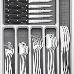 Heavy Duty Cutlery Utensil Sets with Steak Knives, Rust-proof, Mirror Polished, Dishwasher Safe