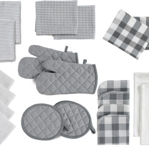 LANE LINEN Kitchen Towels and Dishcloths Sets – 20 Pc Kitchen Essentials for New Home, Heat Resistant Oven Mitts & Pot Holder, Absorbent Flour Sack Dish Towels- Grey