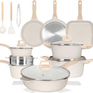 Non Stick, Cookware Set with Casserole, Frying & Saucepans, Oven Safe – White