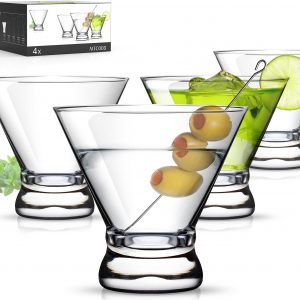 Martini Glasses Set of 4, Stemless Martini Cocktail Glasses for Margarita, Manhattan, Cosmopolitan, Home Bar, Evening Parties, Birthdays, Housewarming Gift, Crystal Clear 8 OZ