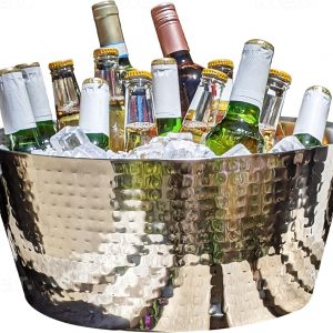 Hammered Stainless-Steel Beverage Ice Tub, Double-Walled Insulated Drink Bucket with Double Hinged Handles.12 Quarts