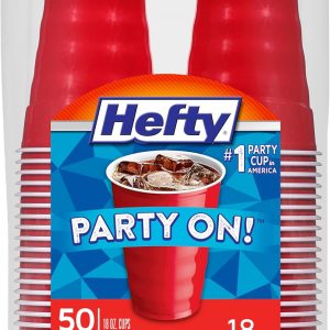 Party On Red Plastic Cups 50 Count, 18 Ounce, Disposable Plastic Party Cups for Easy Cleanup and Large Gatherings, for BBQs, Birthdays, Parties, and More,