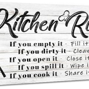 Pinetree Art Kitchen Rules Wall Decor Funny Inspirational Quote Canvas Print Art Modern Rustic Farmhouse Kitchen Decorative (8X16 Inch, W)