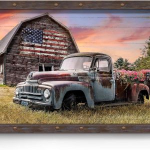 Rural Landscape Framed Artwork Farmhouse Blue Truck Picture Large