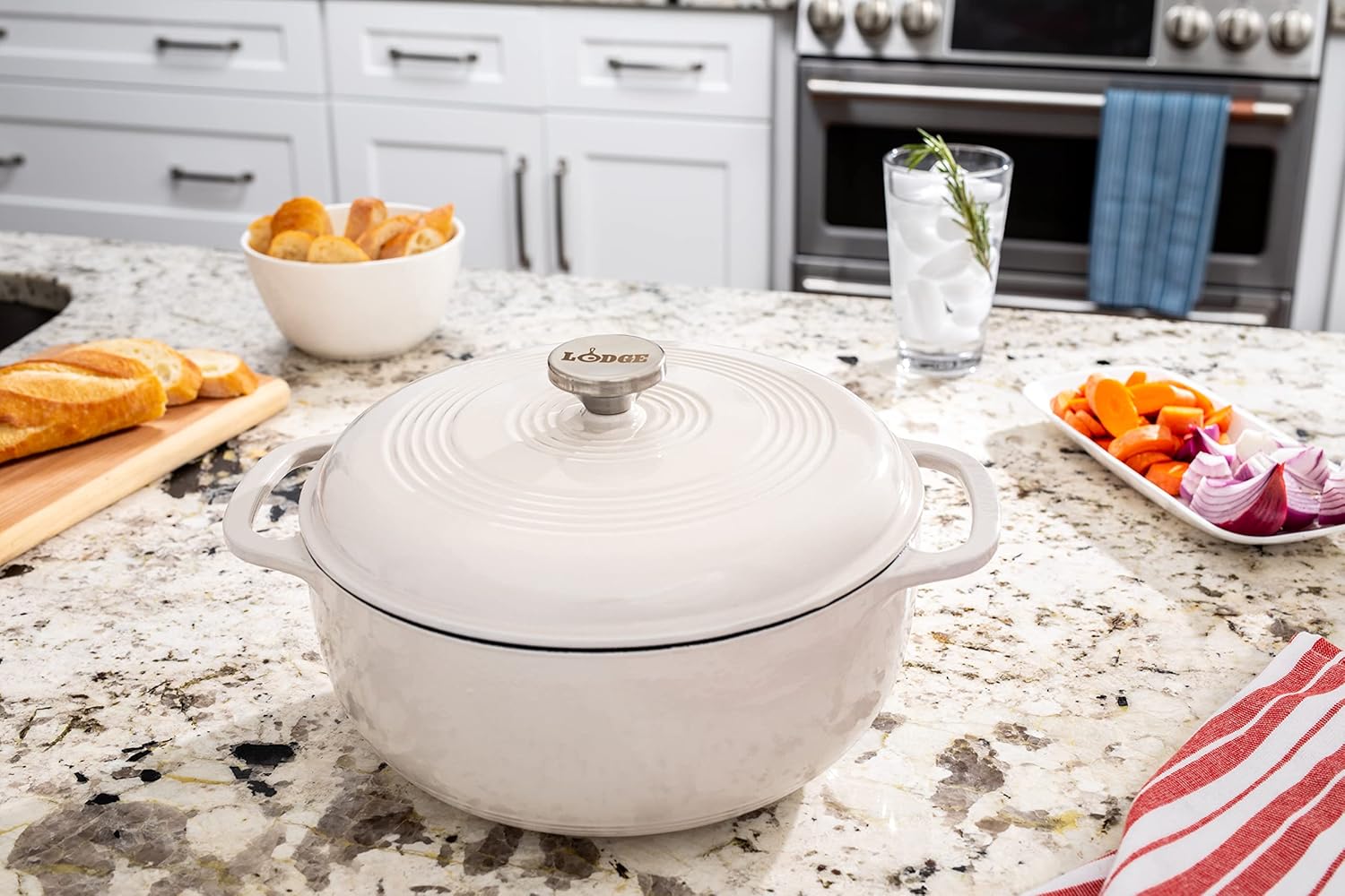 • YOUR GO-TO DUTCH OVEN: A flawless pairing of form and function that doesn’t quit. The Lodge Cast Iron Dutch Oven not only makes your kitchen look good but is an enameled classic great for preparing and serving memorable meals. Broil, braise, bake or roast your favorite meals in the oven up to 500 Degree F.