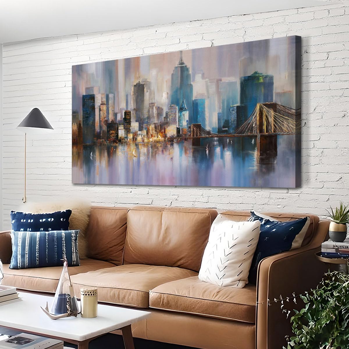 - Skyline Wall Art Feature: High definition superior inject machinery printing on good quality canvas,waterproof, non-fading for more than 50 years. Gallery wrapped with wooden bar inner and hooks mounted on each panels, simply assemble for wall decor
