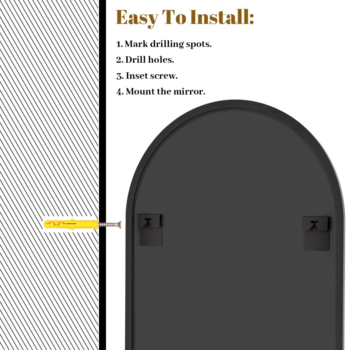 - Easy To Mount: Includes instruction and installation accessories. The pre installed hooks on the back of the arch mirror can easily be hung on the wall of the master bathroom, living room, bedroom, or entryway hallway