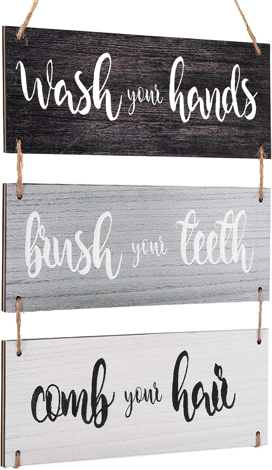- Package content: the wood hanging wall signs consist of 3 classic colored wooden boards tightly strung by a rope, and the board is printed with funny bathroom words, adding more artists to your home