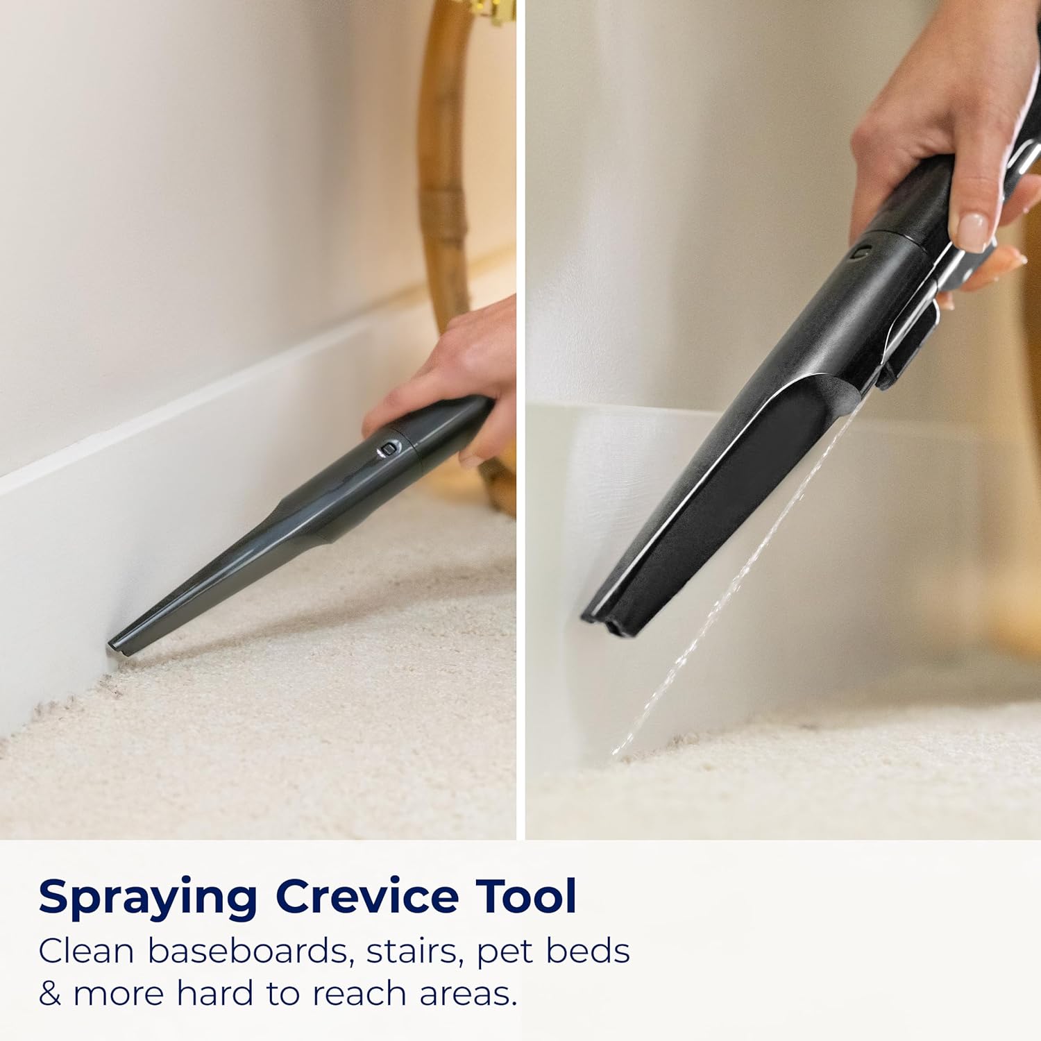 - ABOVE FLOOR CLEANING FOR HARD TO REACH AREAS. Take on baseboards, stairs, upholstery, pet beds and more with the 3” Tough Stain Tool and Spraying Crevice Tool.