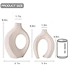 - Size- This set includes two matte Milky White handmade ceramic vases. The taller vase measures W 6.3″ X H 8″, with a vase neck of 1.3″. The shorter vase measures W 5.4″ X H 7″, with a vase neck of 0.9″. Both vases feature a boho style.