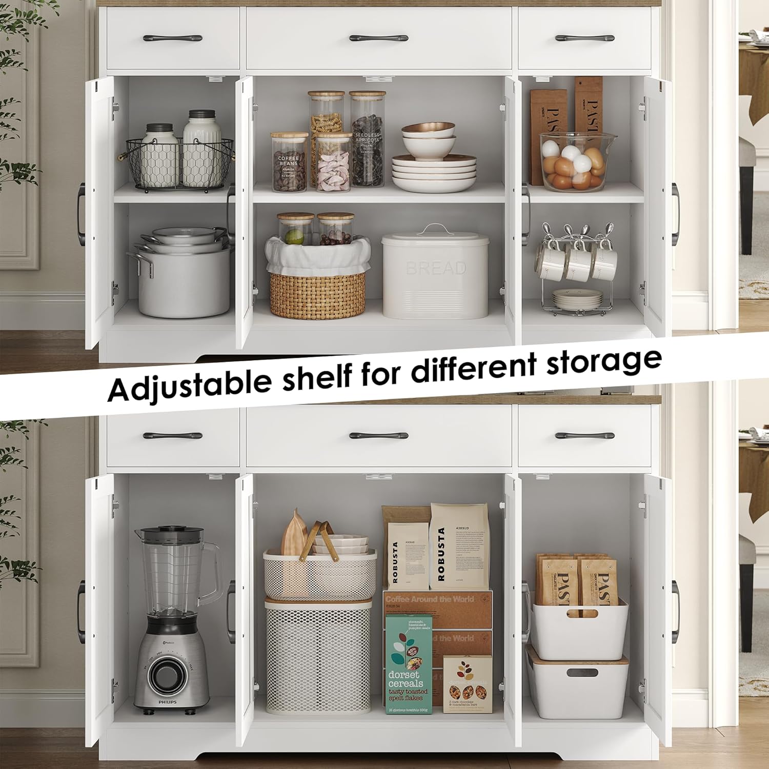 Dinning Room Buffet with Drawers, 55″ Large Sideboard Storage Cabinet with Shelves and Doors, Modern Farmhouse for Kitchen, Dining Room, White/Rustic
