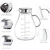 • 【HIGH QUALITY GLASS]  The carafe is free of any heavy metals and toxins. The pitcher is made of high-quality and grade borosilicate glass, which is environmentally friendly and recyclable, and can withstand high temperatures of -20~150°C/ -4~302°F. It can be used in a microwave, dishwasher, or even a refrigerator.