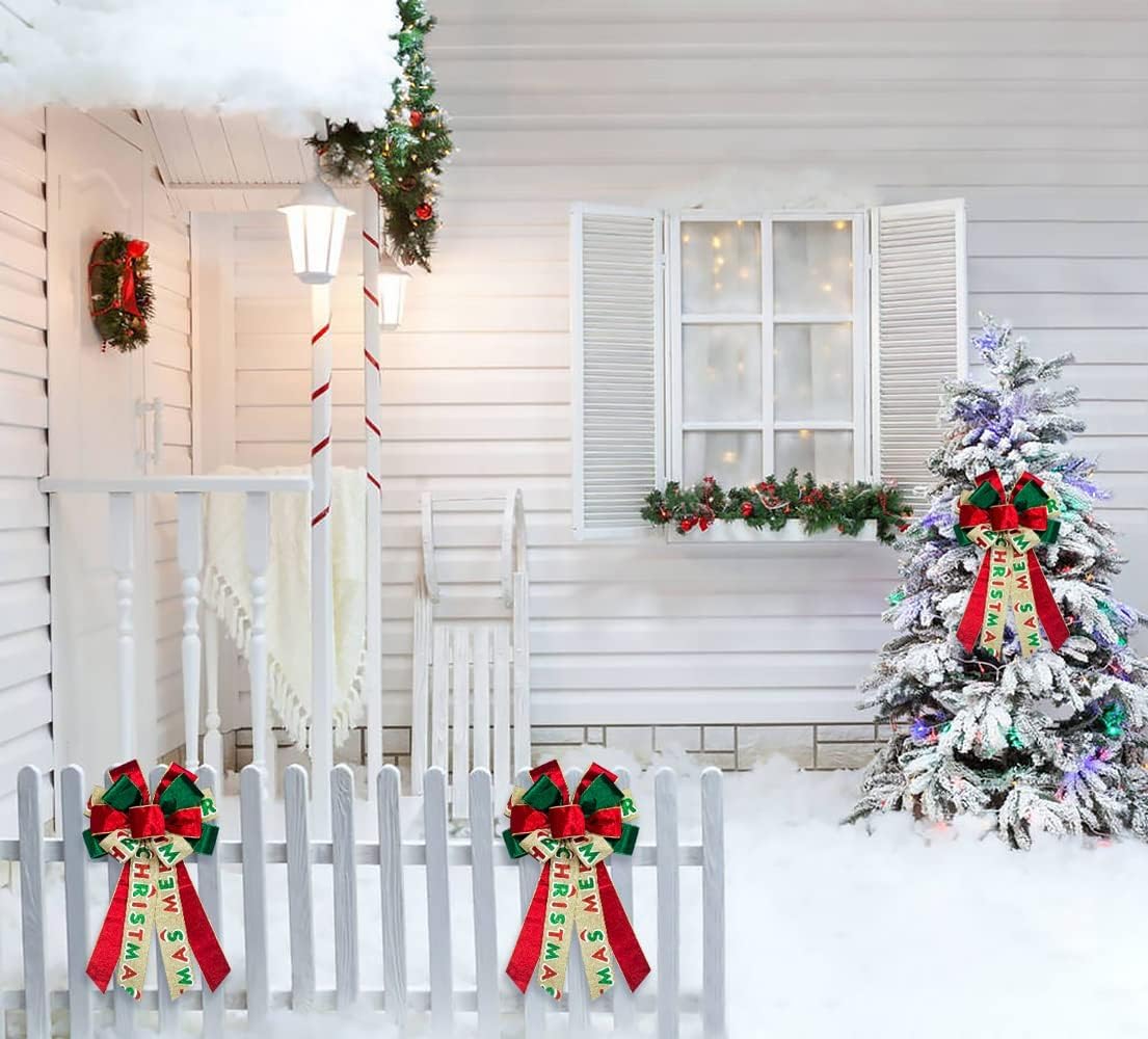 - Design: The Christmas bows are composed of three ribbons, one is red velvet ribbon, one is green velvet ribbon, the other is shining Merry Christmas words flax ribbon. They are enough for your daily use and Christmas/Winter/New yaer decorations.