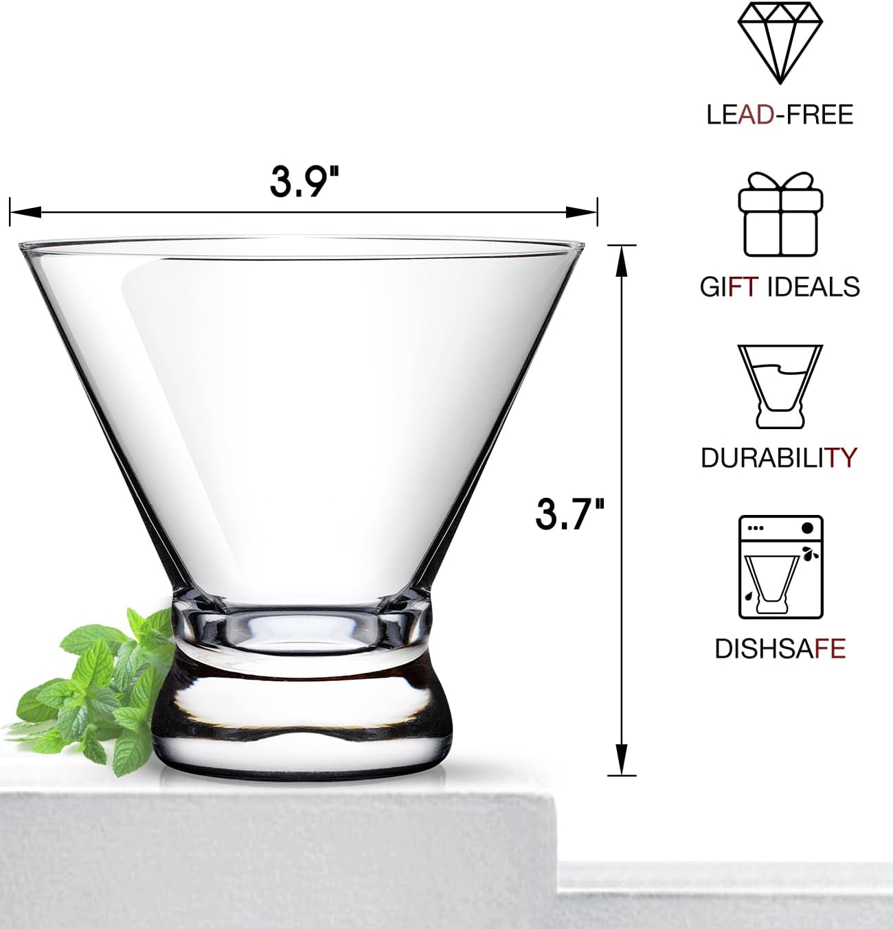 - Lead-free Crystal & Classic Design: Made of premium lead-free ultra-clarity sturdy crystal. Features V-shape cinched design and smooth rim, intended for a comfortable hold and easy use. Stemless but still in the shape of a classic martini glass and you will fall in love with its gorgeous shape, which brings you a more pleasant drinking experience