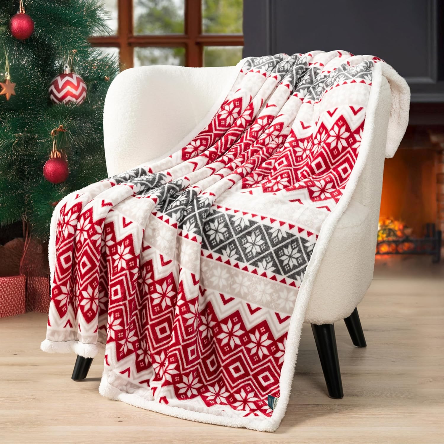 PAVILIA Premium Christmas Sherpa Throw Blanket | Christmas Decoration, Fleece, Plush, Warm, Cozy Reversible Microfiber Holiday Blanket 60×80