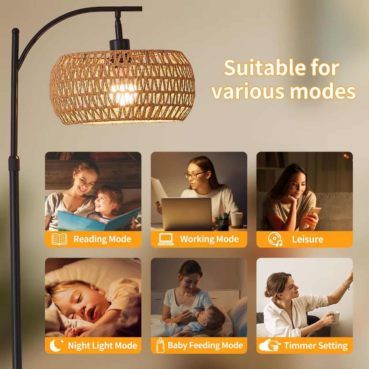 - Smart Dimmable Bulbs Included with 3 Color Temperatures: The Boho Floor Lamp with Shelf comes with Smart Bulbs and Remote Control, which supports stepless dimming of brightness (1%-100%) and different color adjustable temperatures (3000K-6000K).