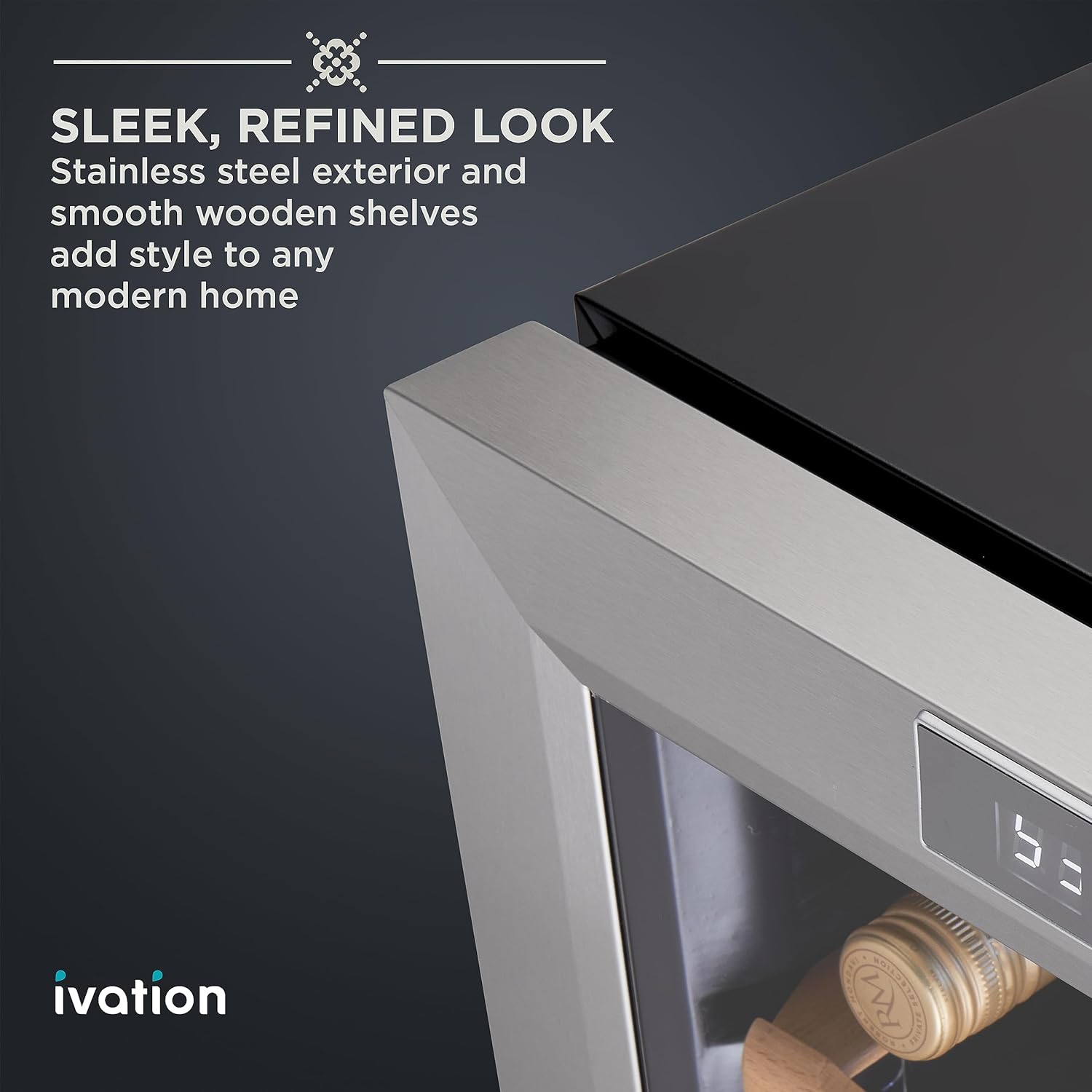 - FEATURES: Sleek stainless steel design with with premium oak wook shelves Exterior digital controls and LCD temp display (°F/°C) Soft interior lighting with on/off control 100% Customer Satisfaction GUARANTEED We stand behind our products and pride ourselves with exceptional customer service care. If you need help please contact us at info@myivation.com or call 866-849-3049.