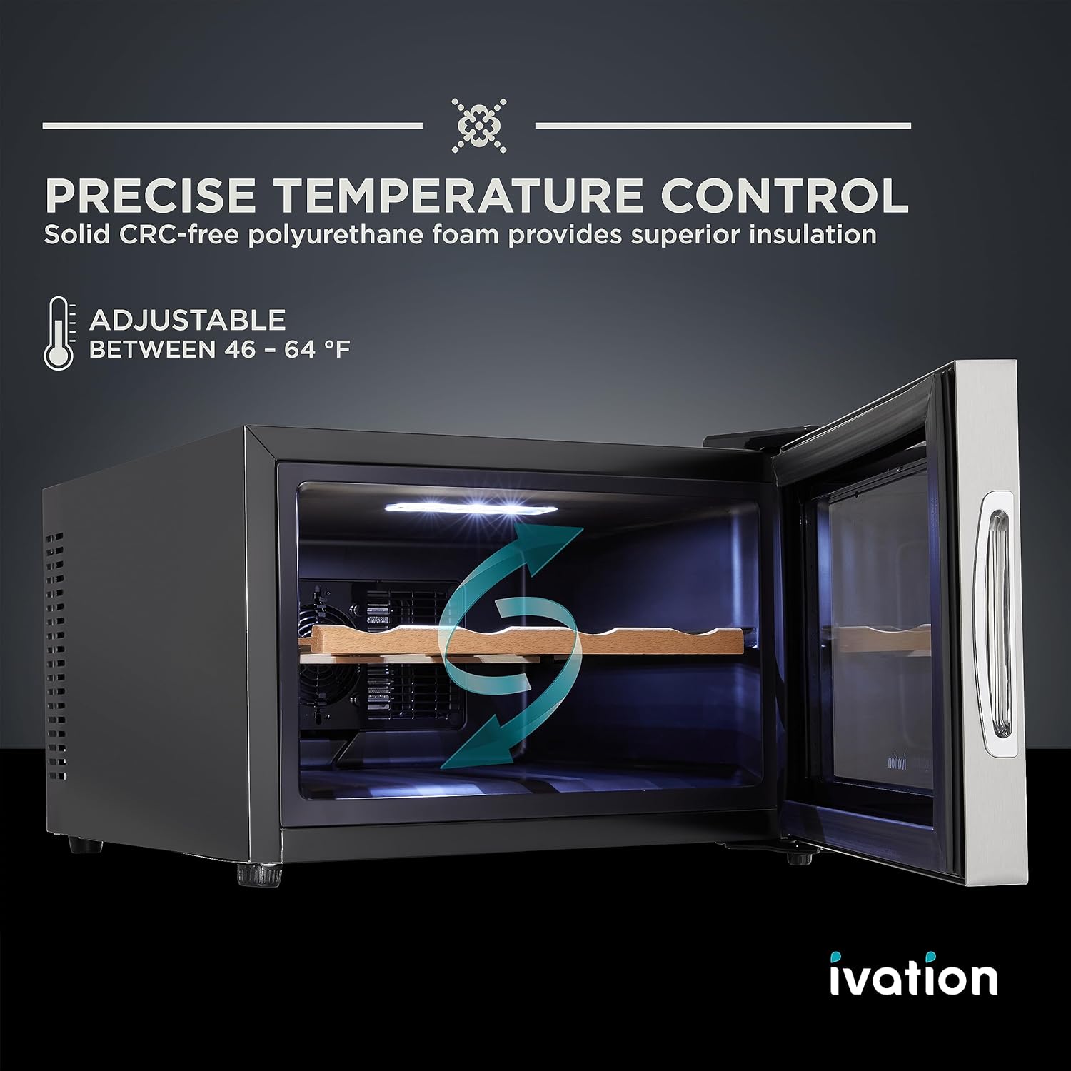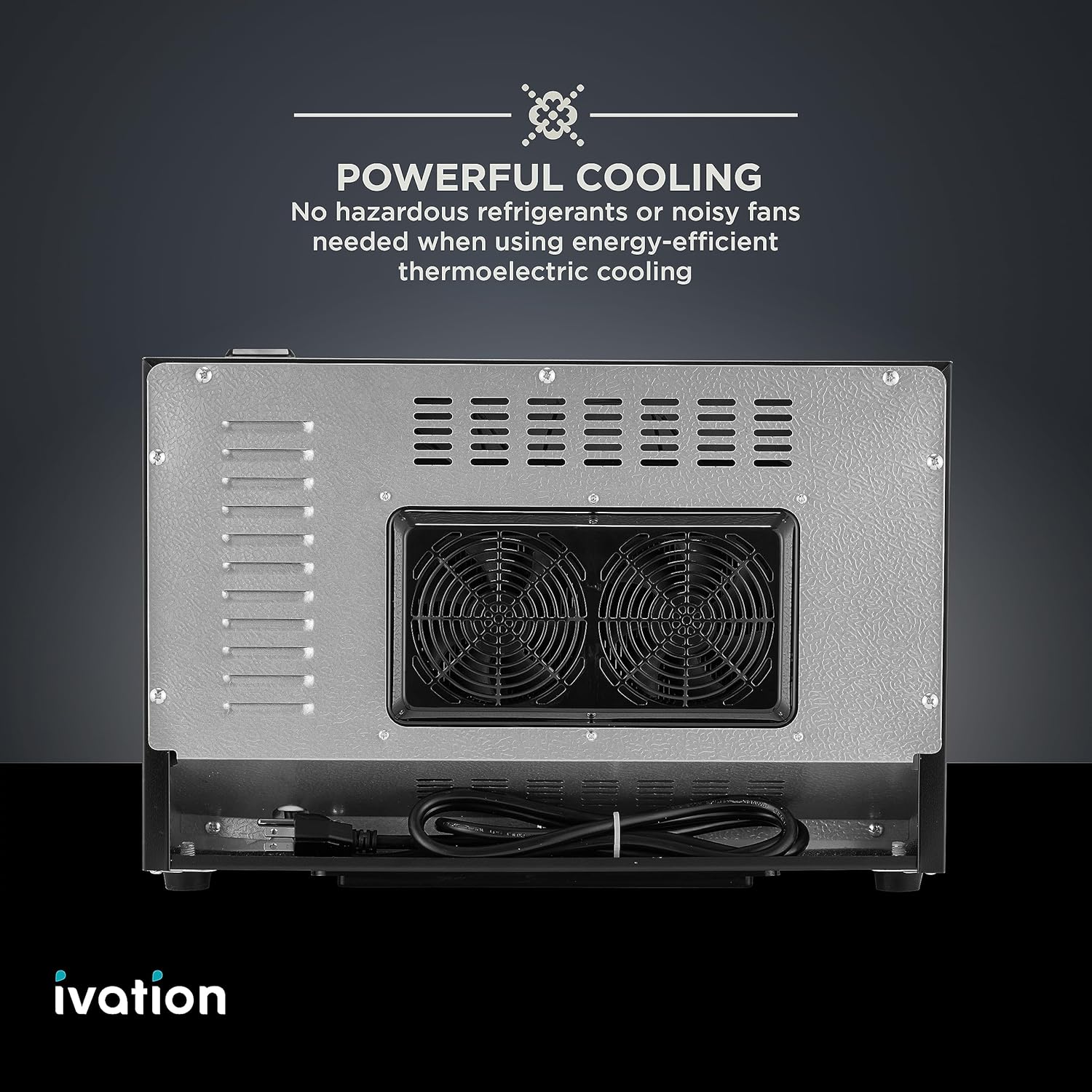 - PERFECT Stable TEMPERATURE: The Ivation cooler enables you to store your wines short & long term in a consistent stable temp environment, and allows you to customize the temp to one that creates an ideal climate for your wines ageing process (Range 46° – 64°F (8° – 18°C), therefore bringing out the true characteristics and full flavor of your wines in the long-term.